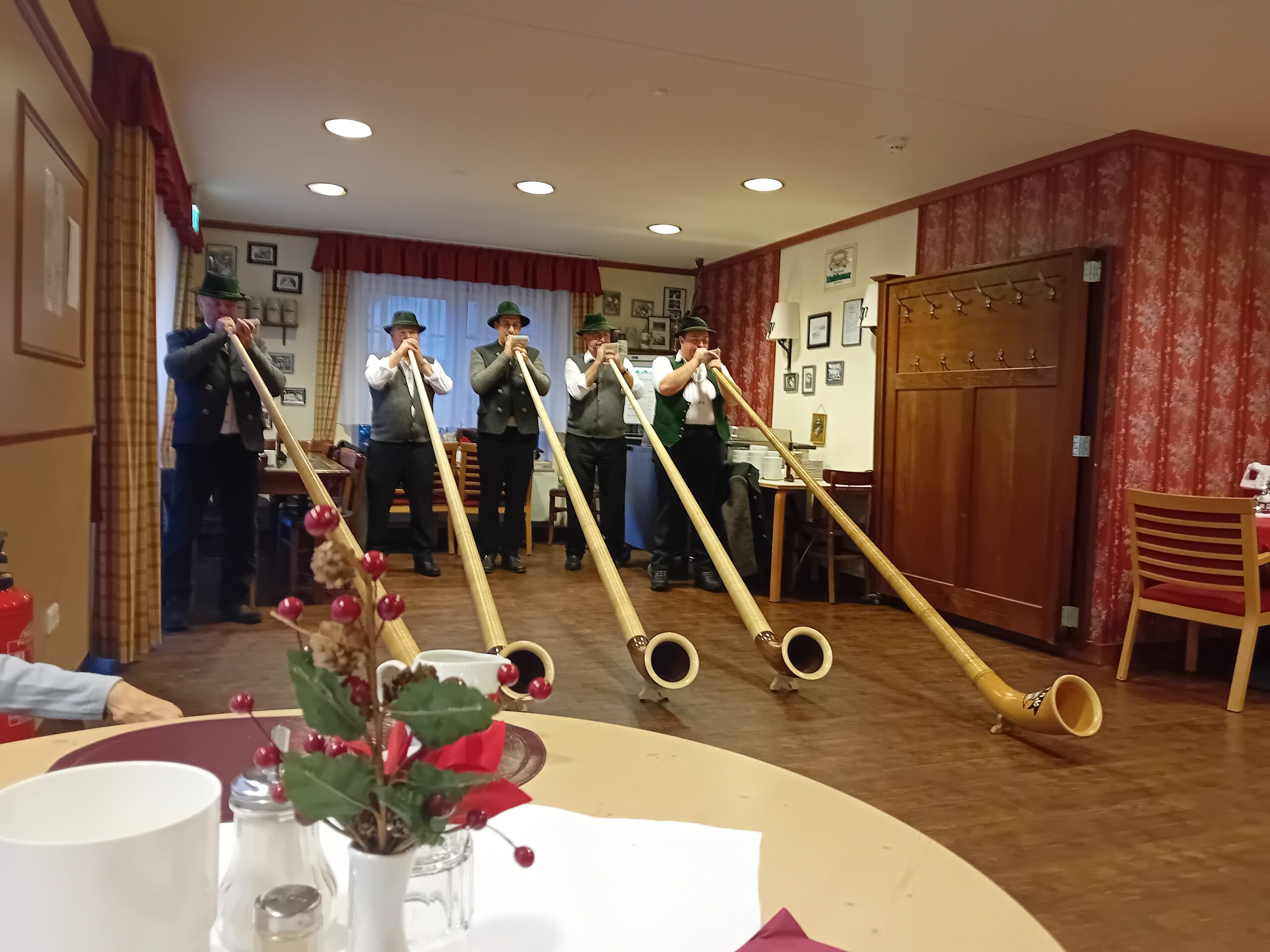 In unserem SenVital fand zur Adventszeit ein tolles, weihnachtlich-buntes Programm statt. So besuchten uns neulich die Alphornbläser und verzückten bei Glühwein, Lebkuchen und Punsch alle Zuhörer mit ihren wunderschönen Melodien. Zu dem bunten Potpourri gehörte etwa gemeinsames Christbaumschmücken, Plätzchenbacken, Weihnachtsdeko-Basteln mit dem örtlichen Frauenbund, Adventssingen, ein besinnlicher Gottesdienst sowie ein schöner Weihnachtsstand im Eingangsbereich.