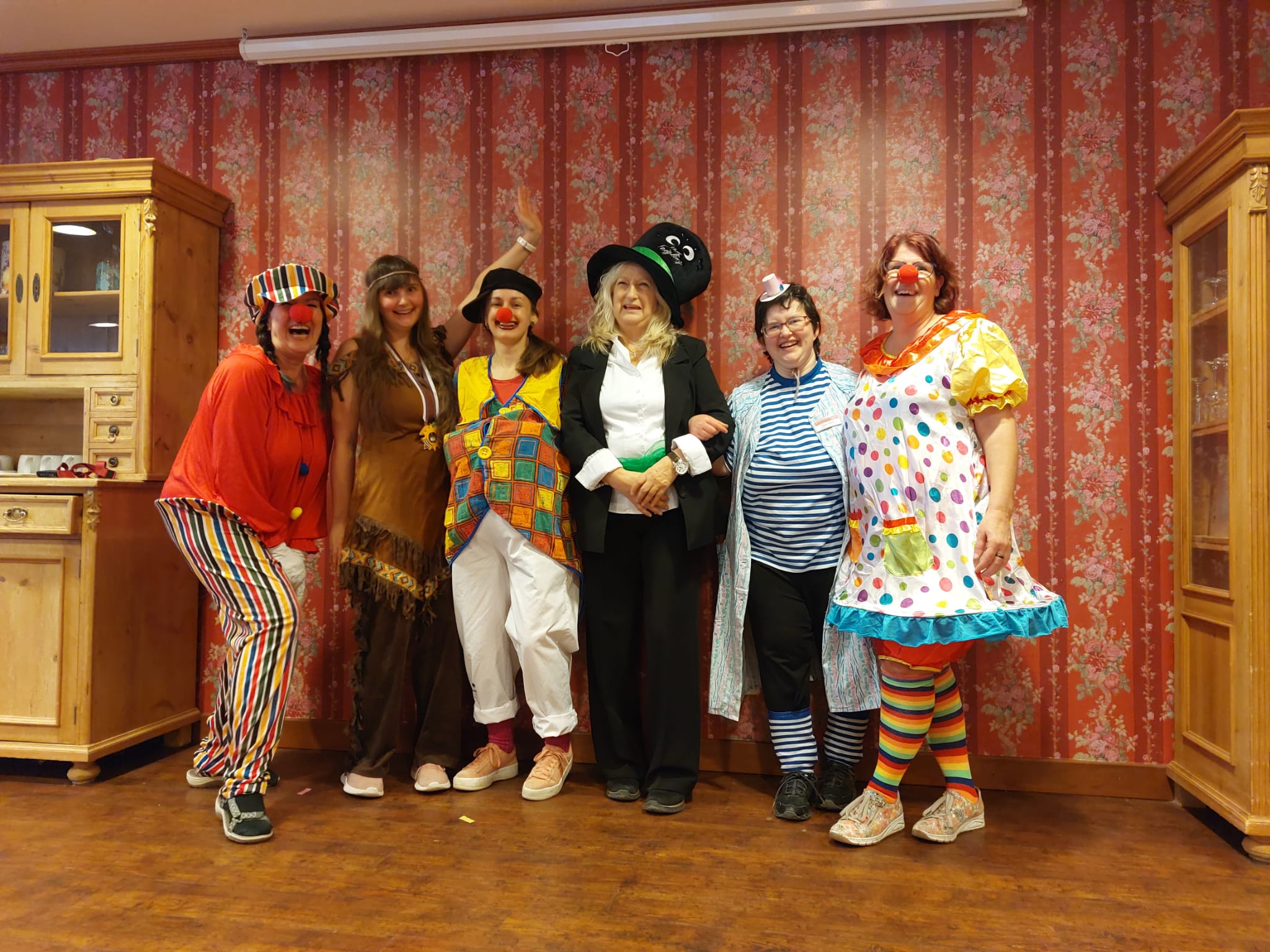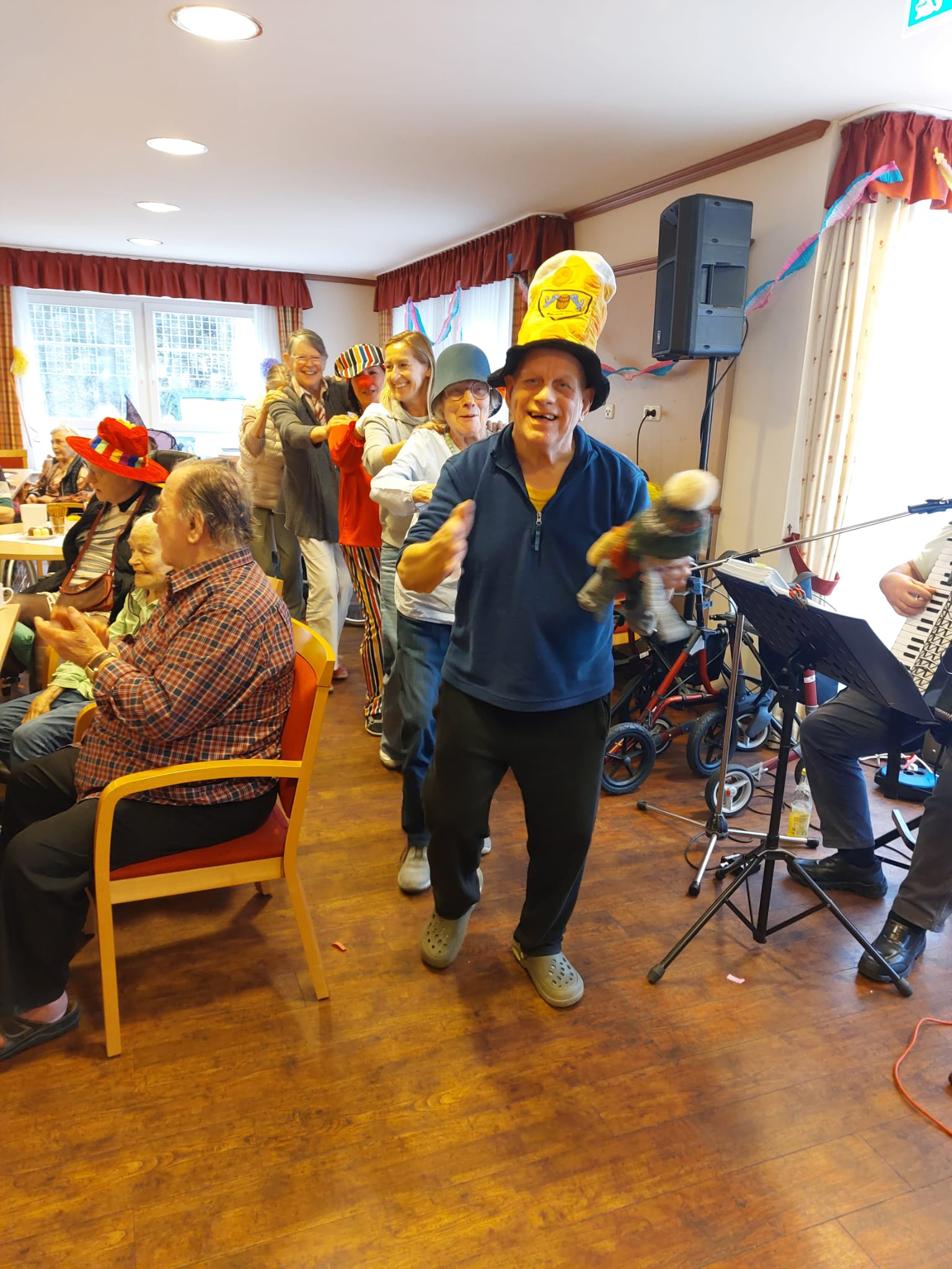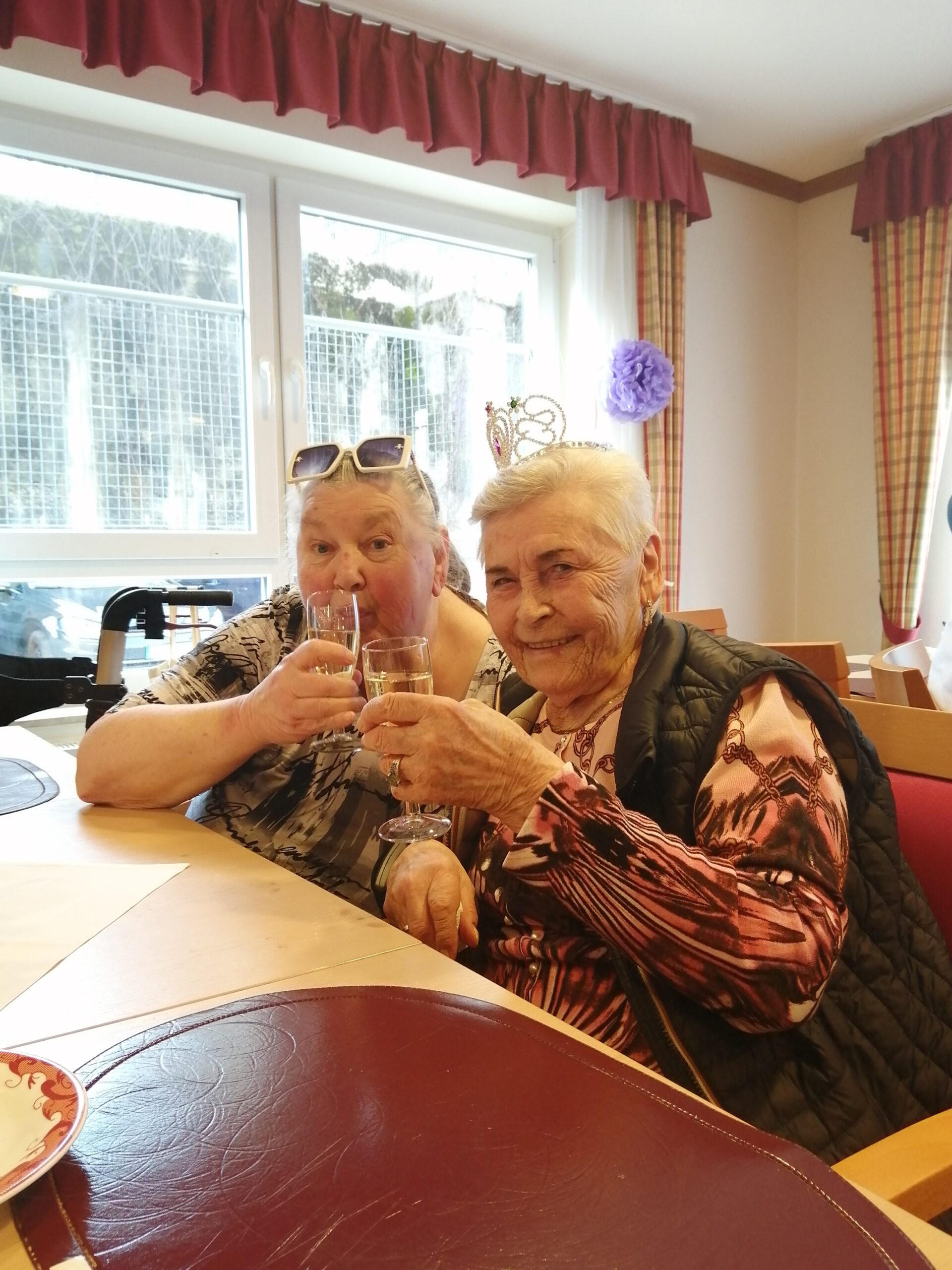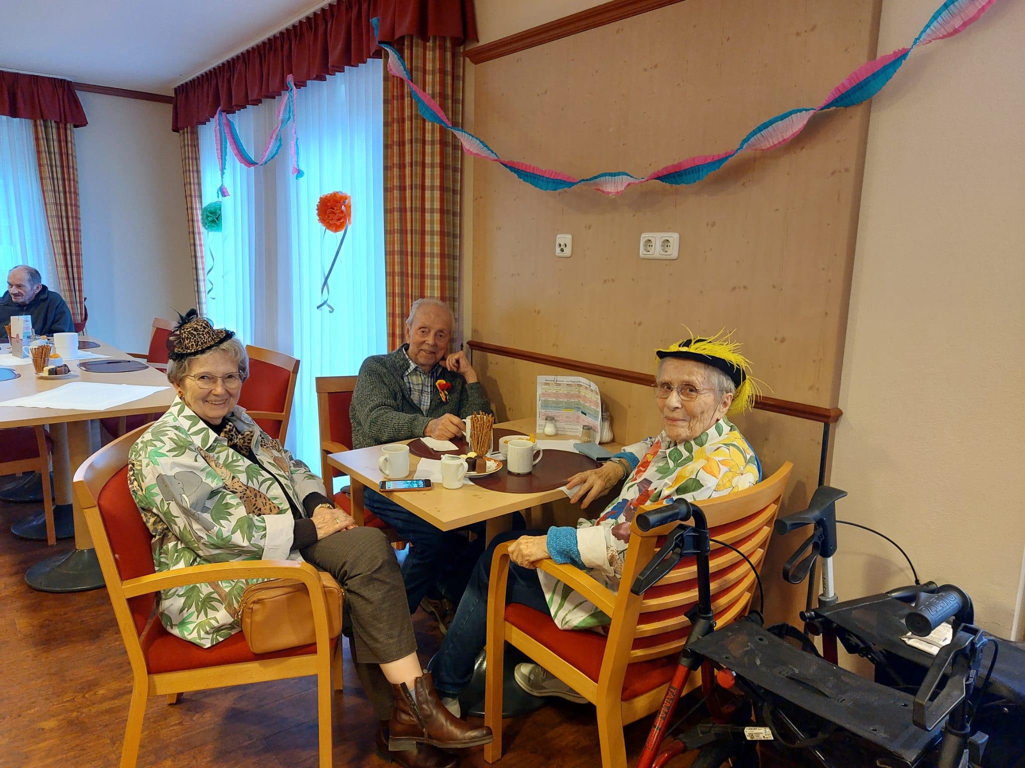 Beim traditionellen „Faschingskranzerl“ trat die Faschingsgarde „Blau-Weiß Kammer“ auf, passenderweise zum Motto „Gute Laune“, und sorgte für tolle Unterhaltung. Unser Mitarbeiter Thomas hielt traditionell eine Büttenrede und zwei unserer ehrenamtlichen Mitarbeiter verteilten zur Freude unserer Gäste als Engelchen und Teufelchen verkleidet im ganzen Haus leckeren Eierlikör. Es gab Krapfen, Kaffee und selbstgemachte Bowle für alle.