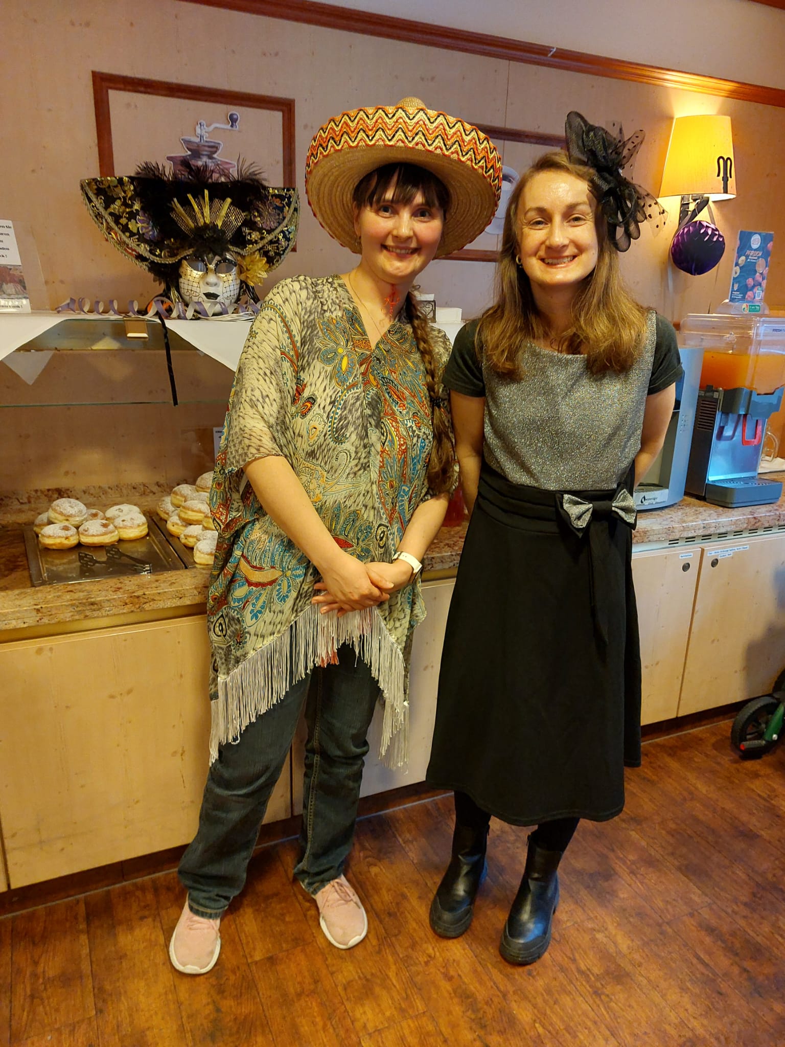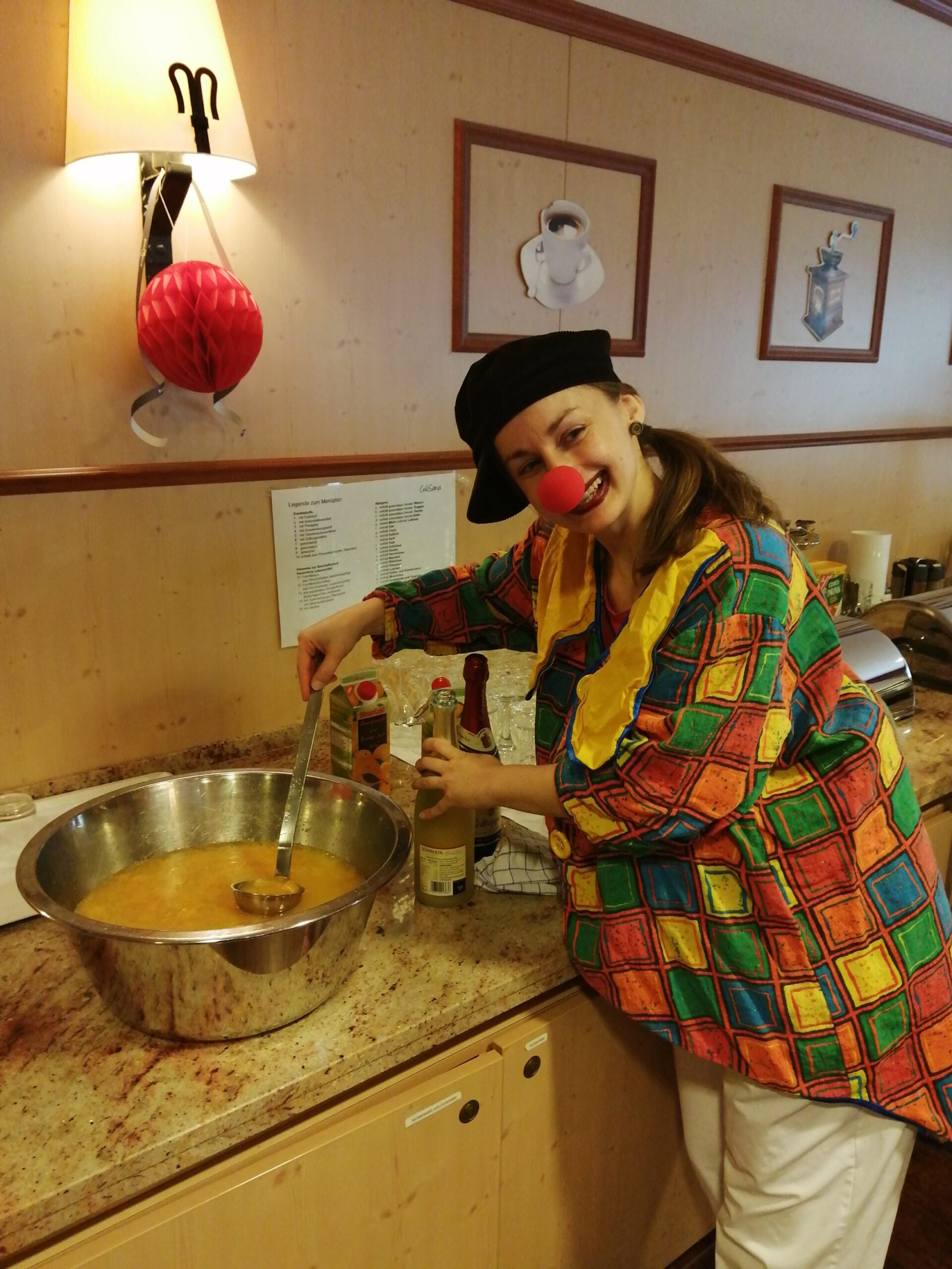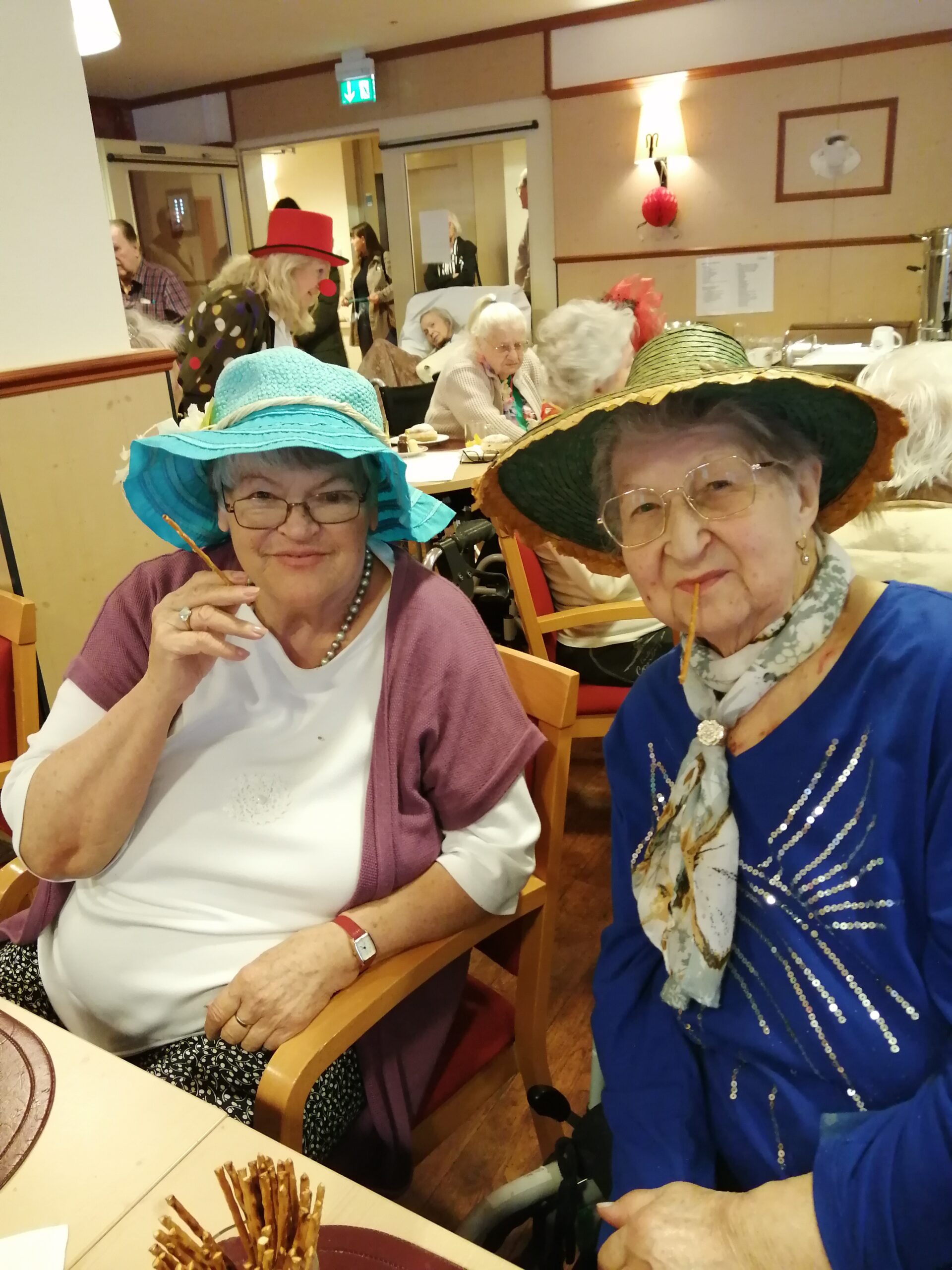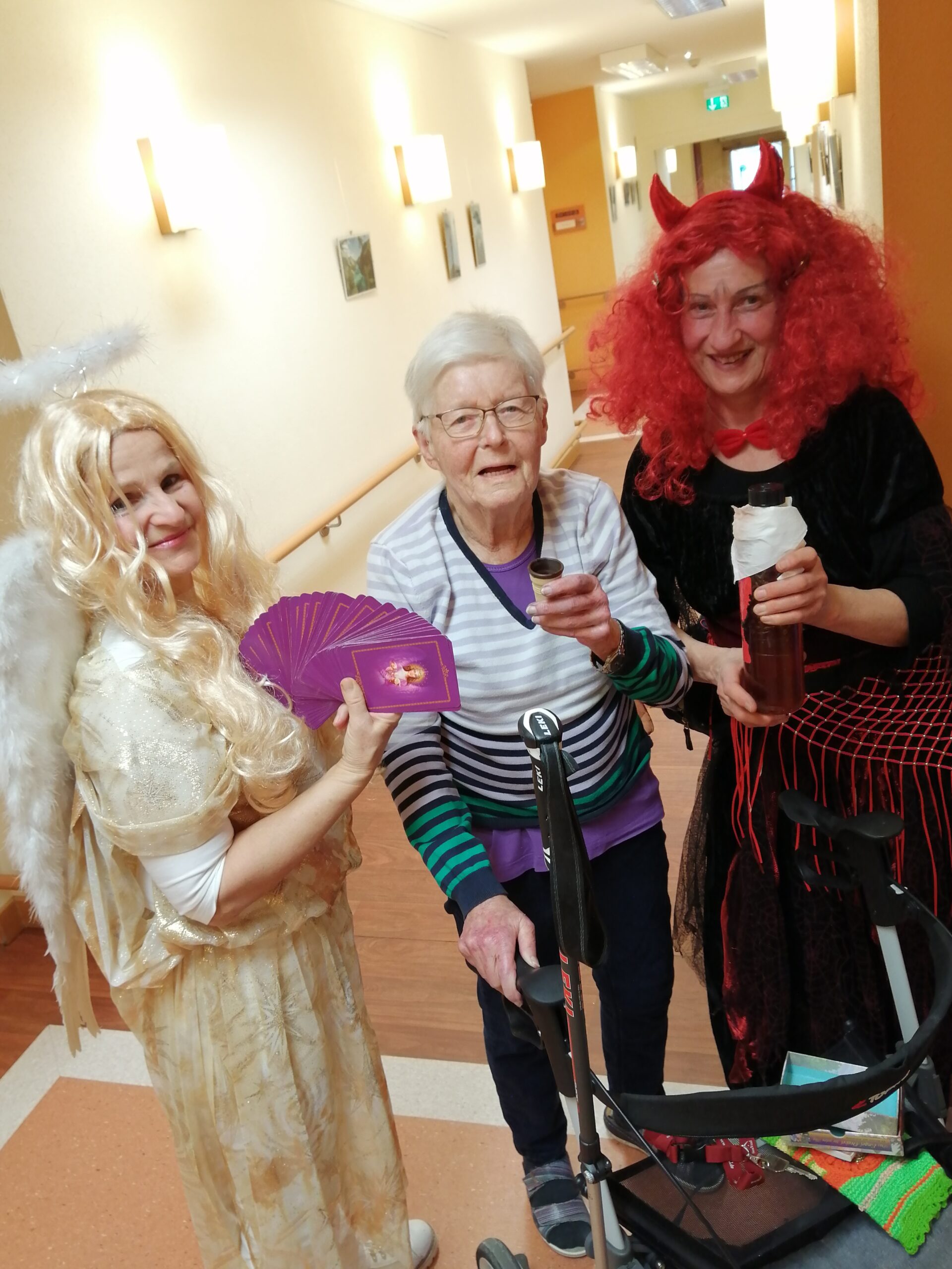 Beim traditionellen „Faschingskranzerl“ trat die Faschingsgarde „Blau-Weiß Kammer“ auf, passenderweise zum Motto „Gute Laune“, und sorgte für tolle Unterhaltung. Unser Mitarbeiter Thomas hielt traditionell eine Büttenrede und zwei unserer ehrenamtlichen Mitarbeiter verteilten zur Freude unserer Gäste als Engelchen und Teufelchen verkleidet im ganzen Haus leckeren Eierlikör. Es gab Krapfen, Kaffee und selbstgemachte Bowle für alle.
