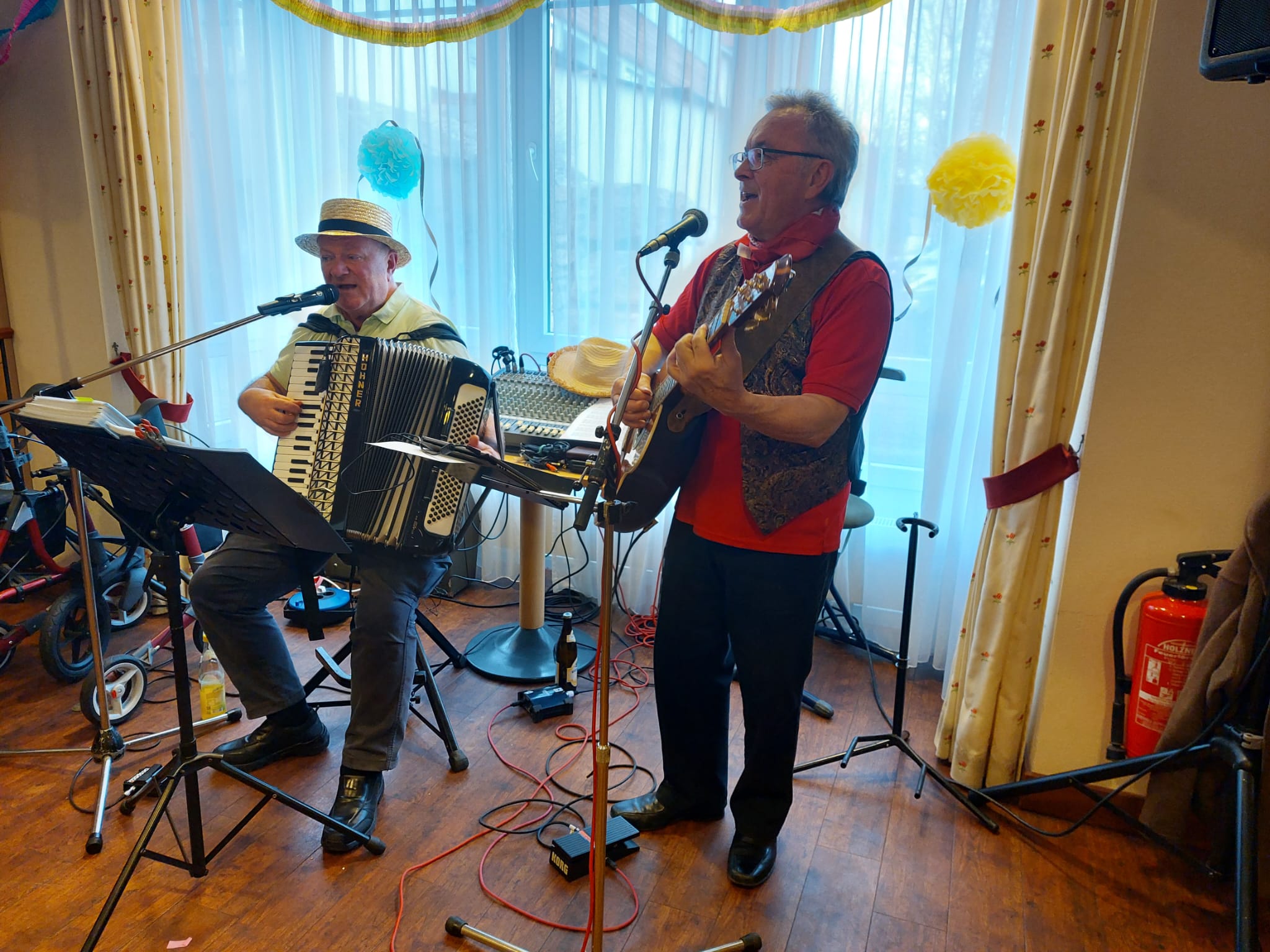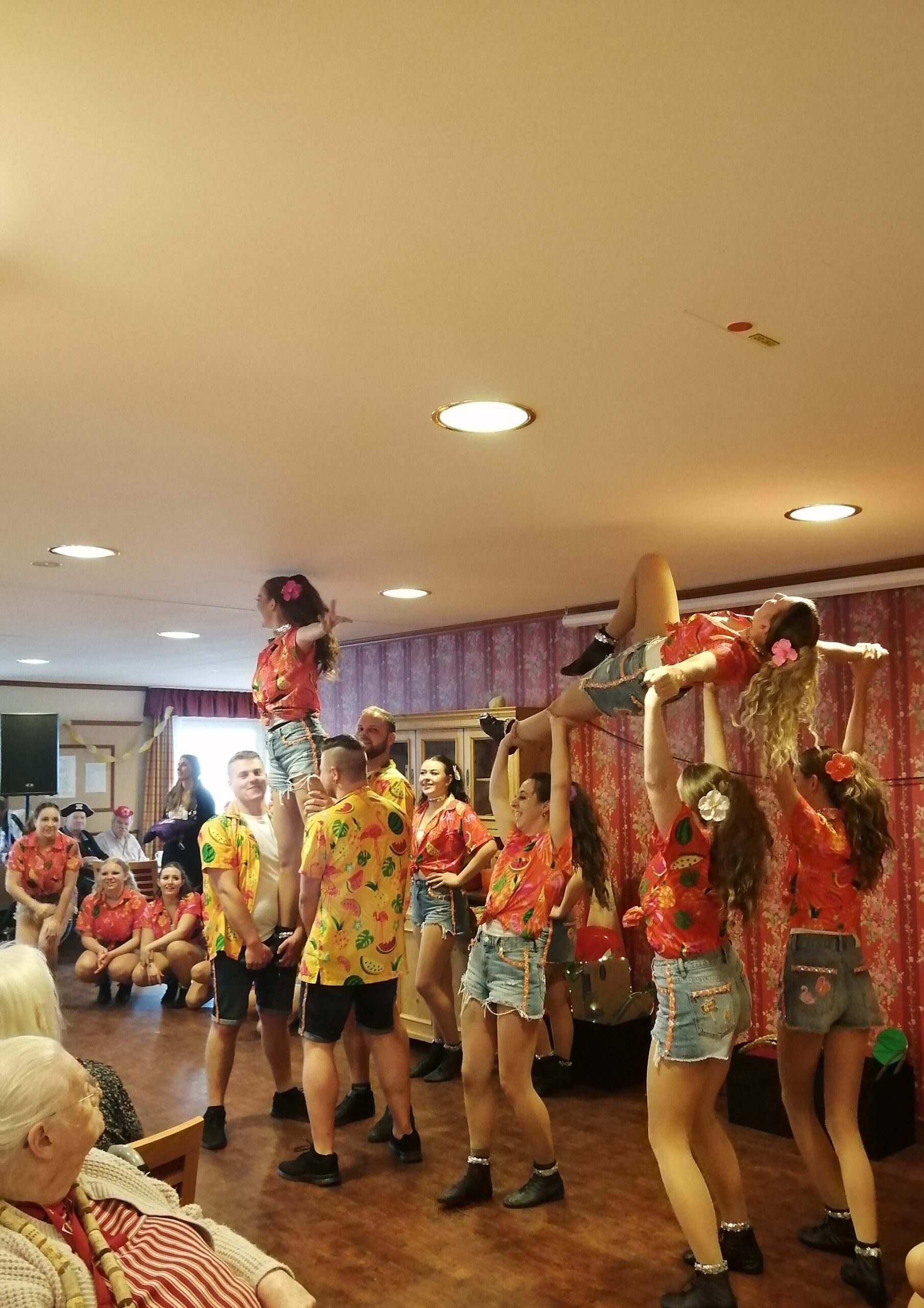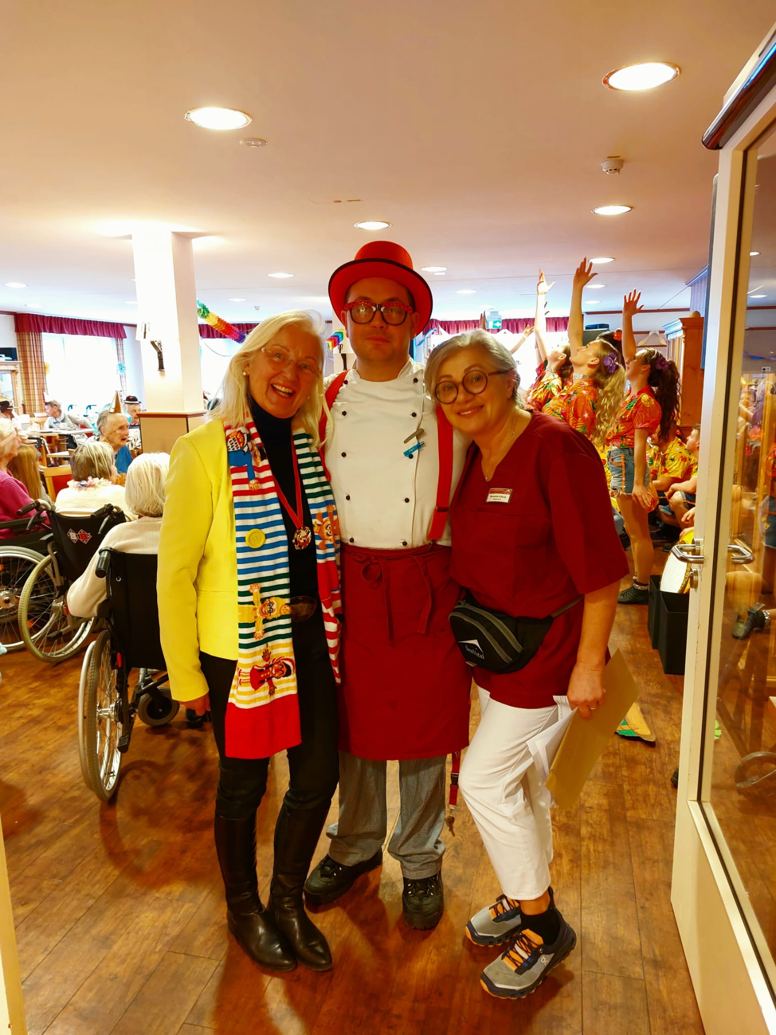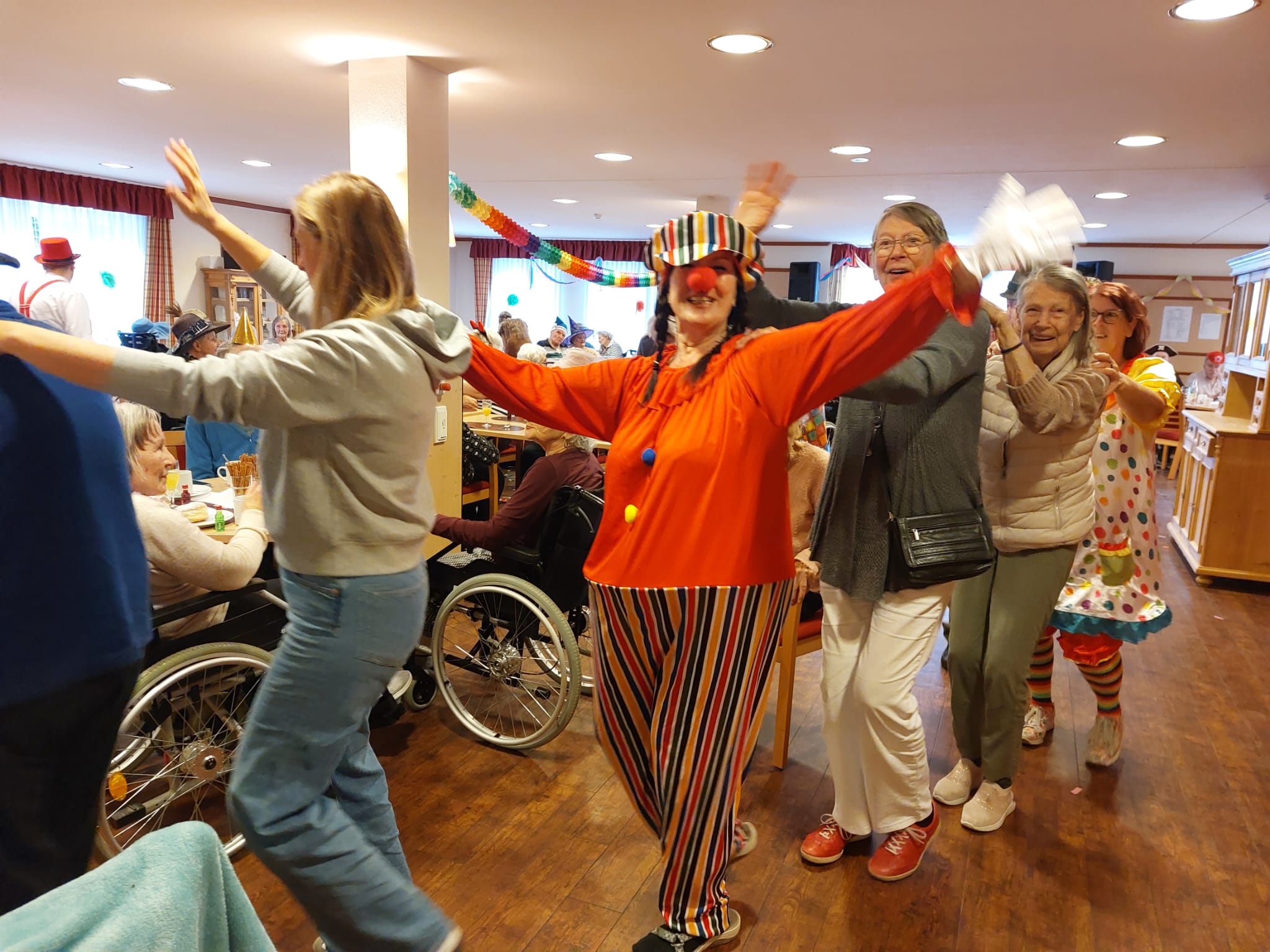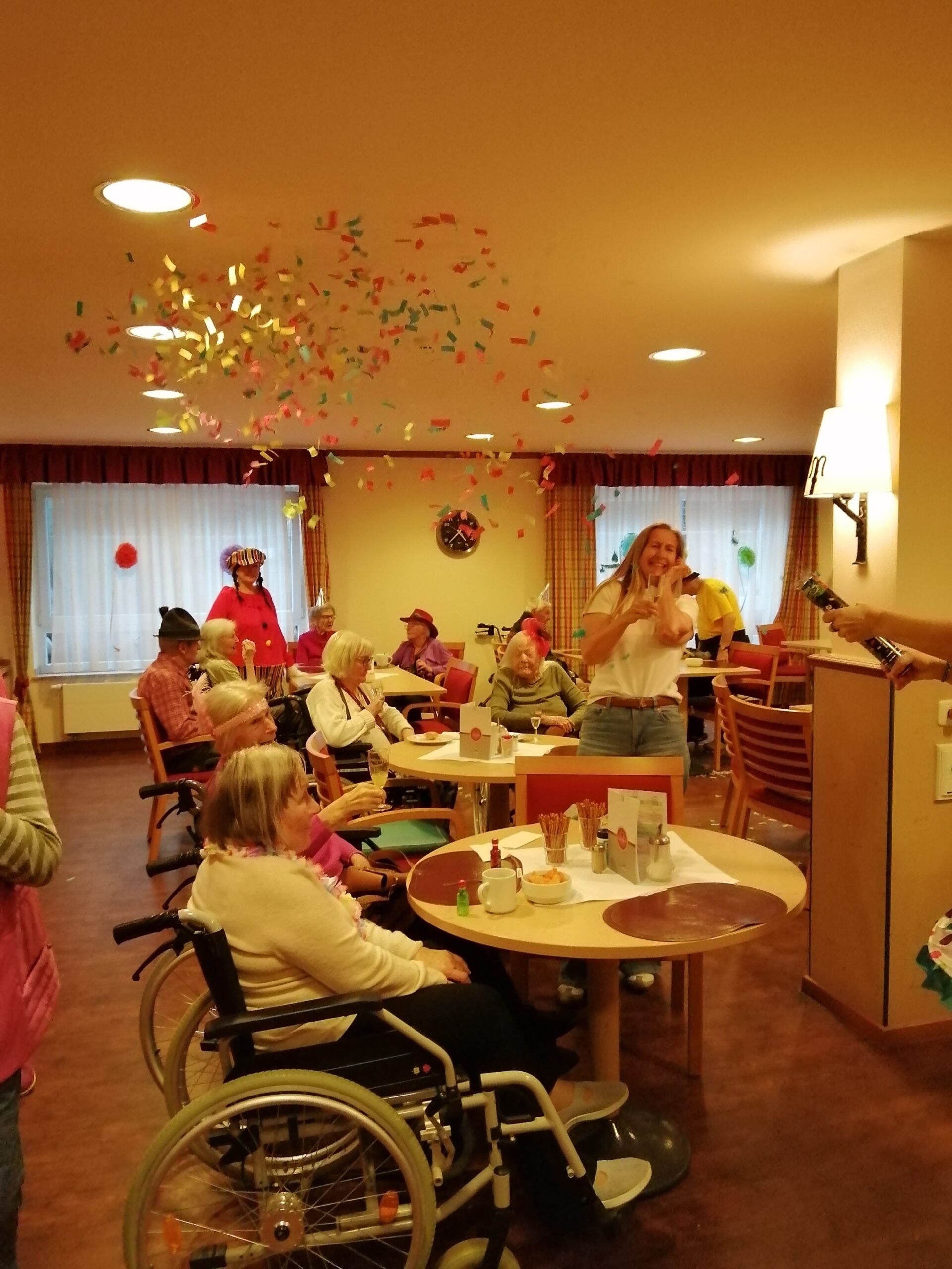 Beim großen Hausfasching dann gab es Musik von „Zwei Muhagln“, Bowle, Sekt, Krapfen und Knabbereien. Der Auftritt der „Faschingsfreunde Chieming e.V.“ mit Prinzenpaar Johanna I. und Andi II war ein besonderes Highlight, ebenso die Tanzshow „Aloha“. Konfettihimmel und Polonaise sorgten für fröhliche Gesichter bei den Senioren.